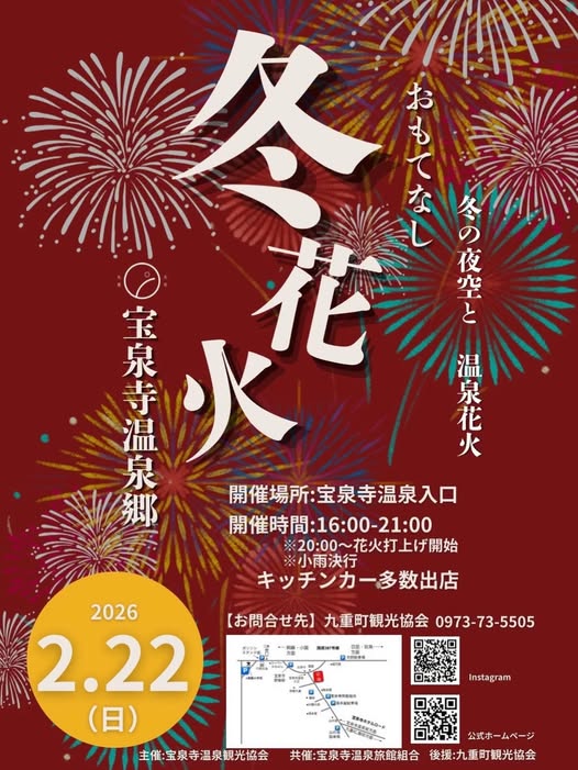 来る2026年2月22日(日)、「宝泉寺温泉郷 おもてなし冬花火」を開催されます。