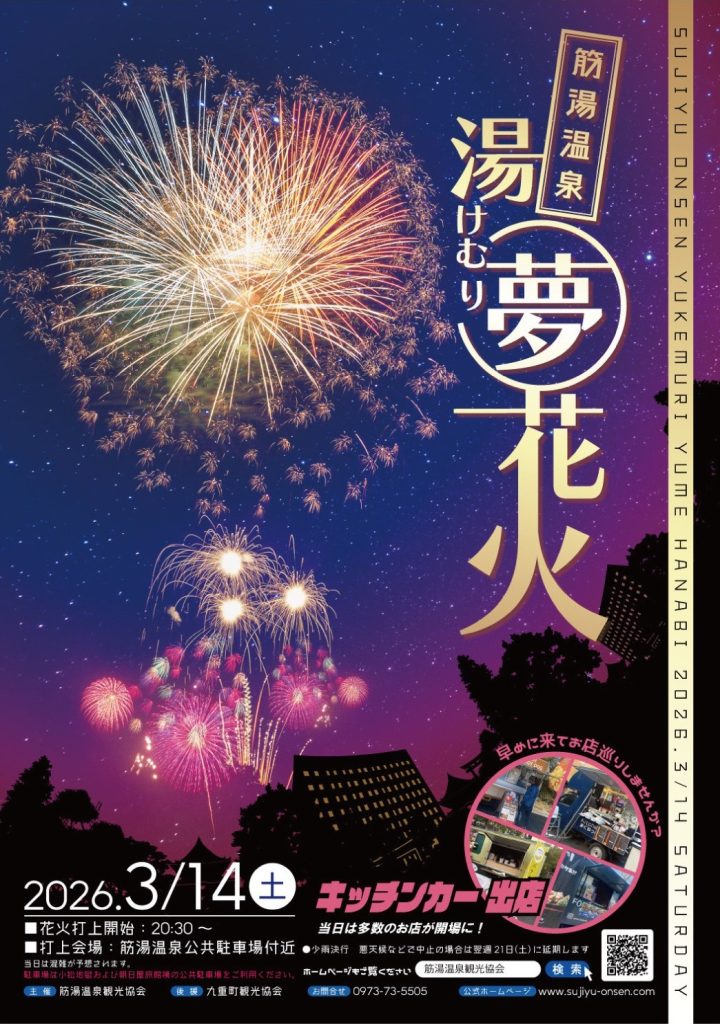 2026年3月14日(土)「筋湯温泉 湯けむり夢花火」が開催されます。